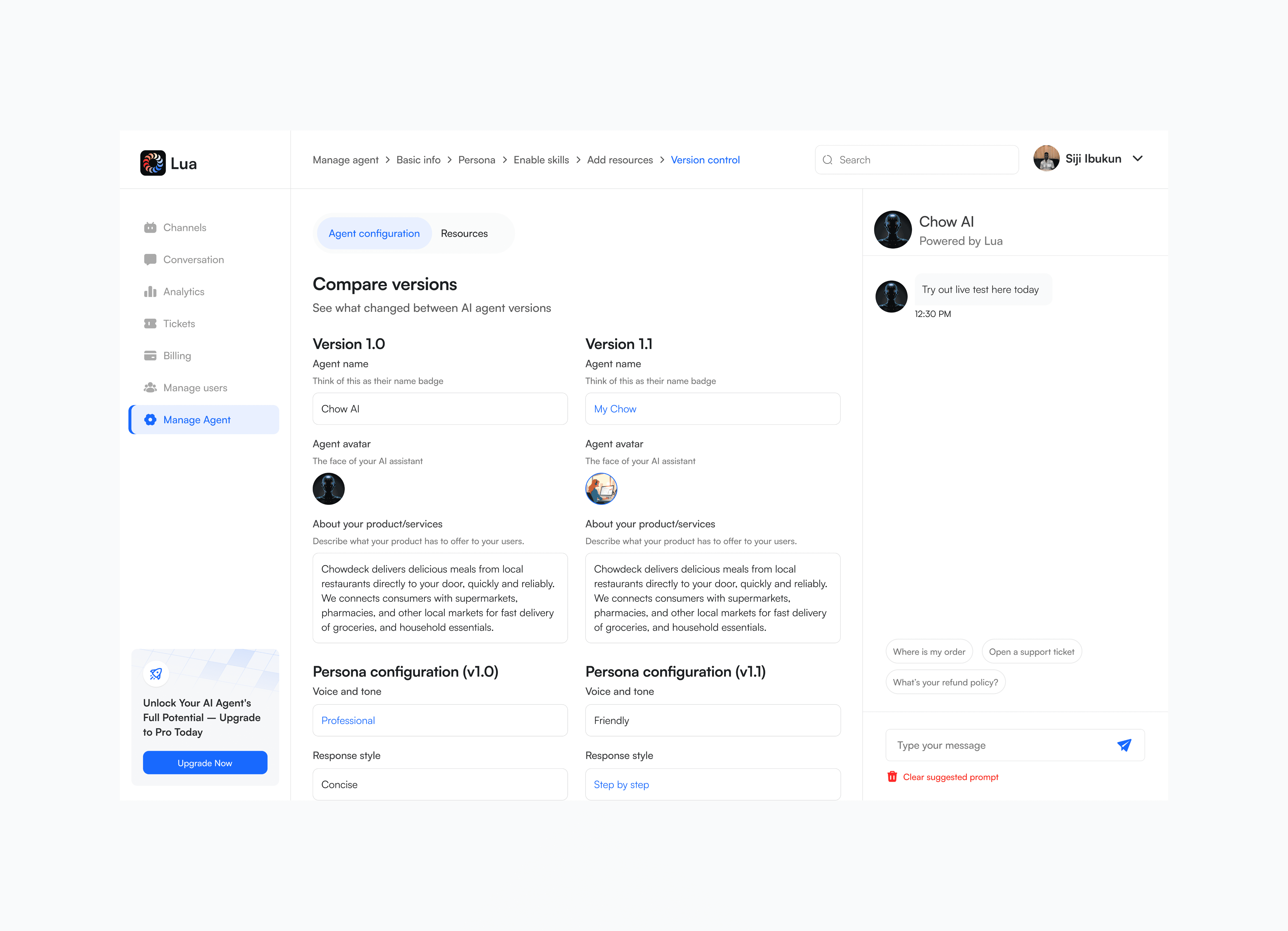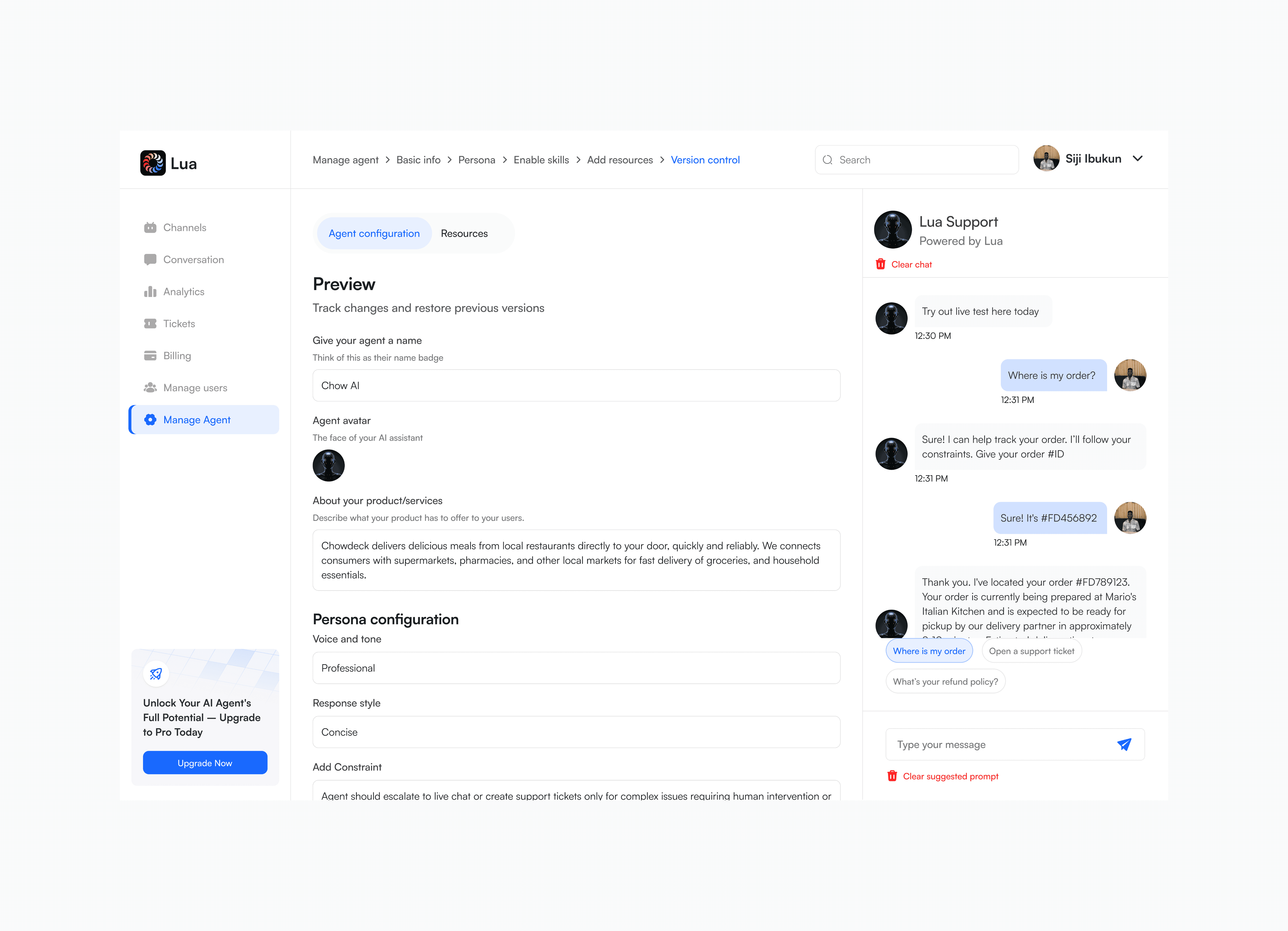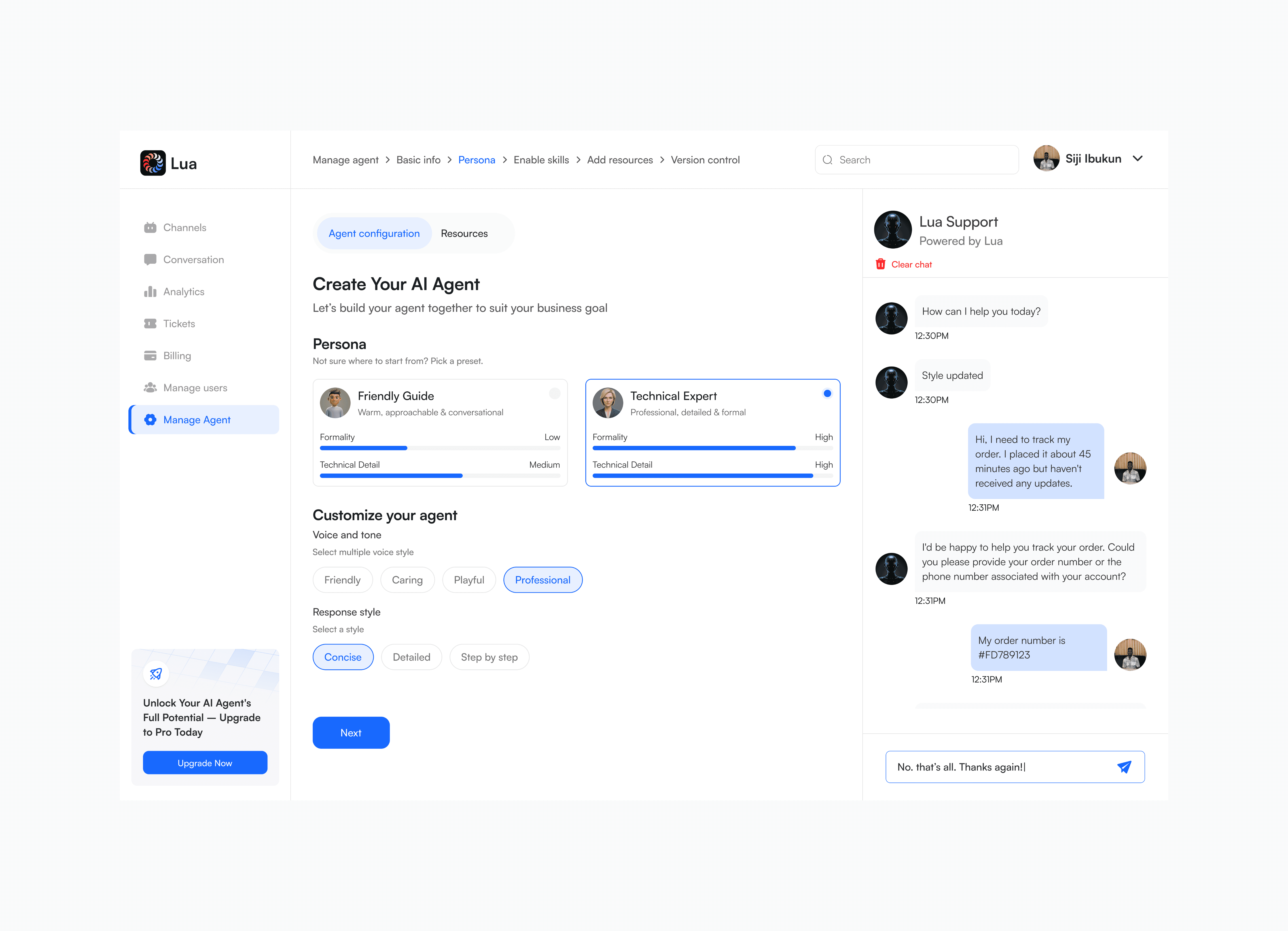 The redesign reimagined how Lua’s AI agents are created and managed, turning what once felt like configuring complex software into an experience more like onboarding a helpful teammate—especially for non-technical users. This was made possible through a two-pane Agent Builder with a constant live preview and a strict commitment to plain, jargon-free language.